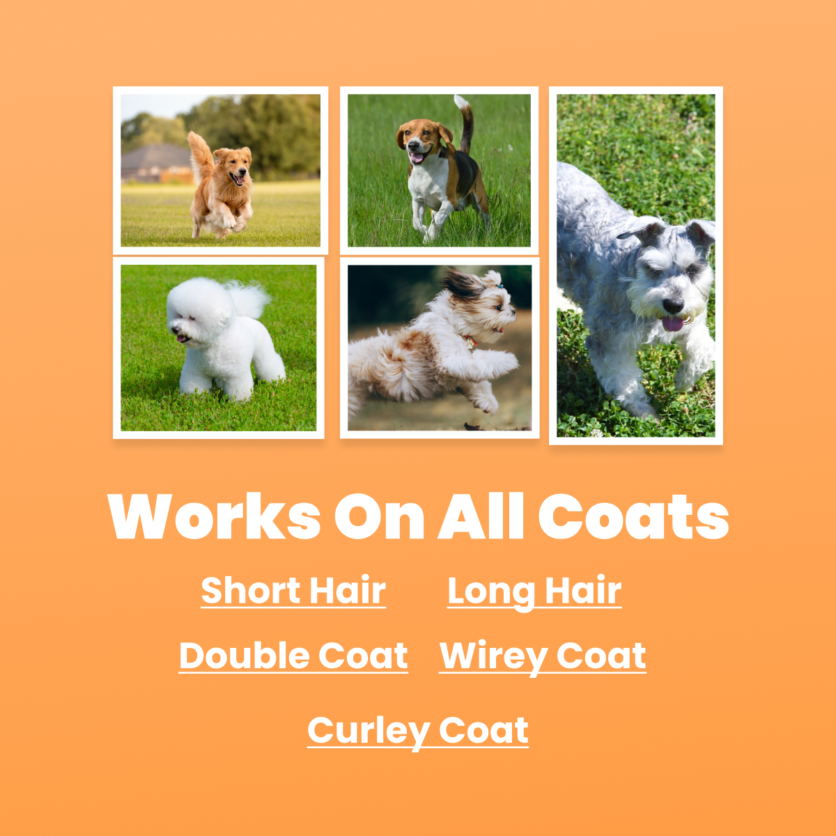 This is not a complete list but an example of the different types of coats – as a general rule if you have a pet that sheds its hair and the hair is not exceptionally long, then the Groomi will work perfectly for you!